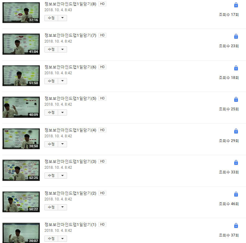 정보보안과목에 대해서 반복훈련을 통해서 모두 암기하는 훈련 동영상입니다.