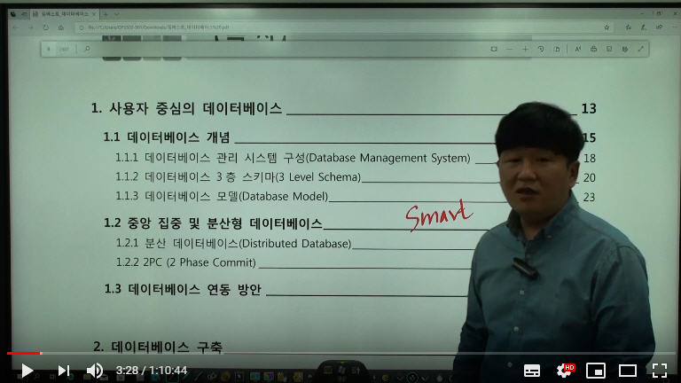 본 강의는 임베스트 데이터베이스 교재를 사용한 촬영입니다. 교재의 내용을 위주로 강의합니다. 데이터베이스 강의는 2주간 촬영되었습니다.